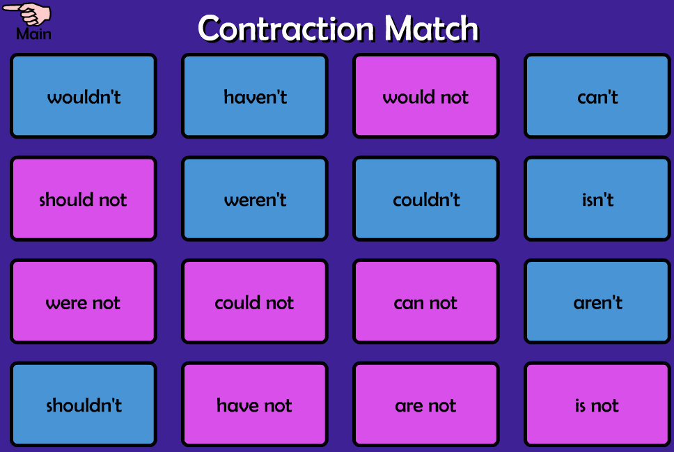 contractions ks1 contraction words teachingcave nouns verbs adjectives grammar match phonics